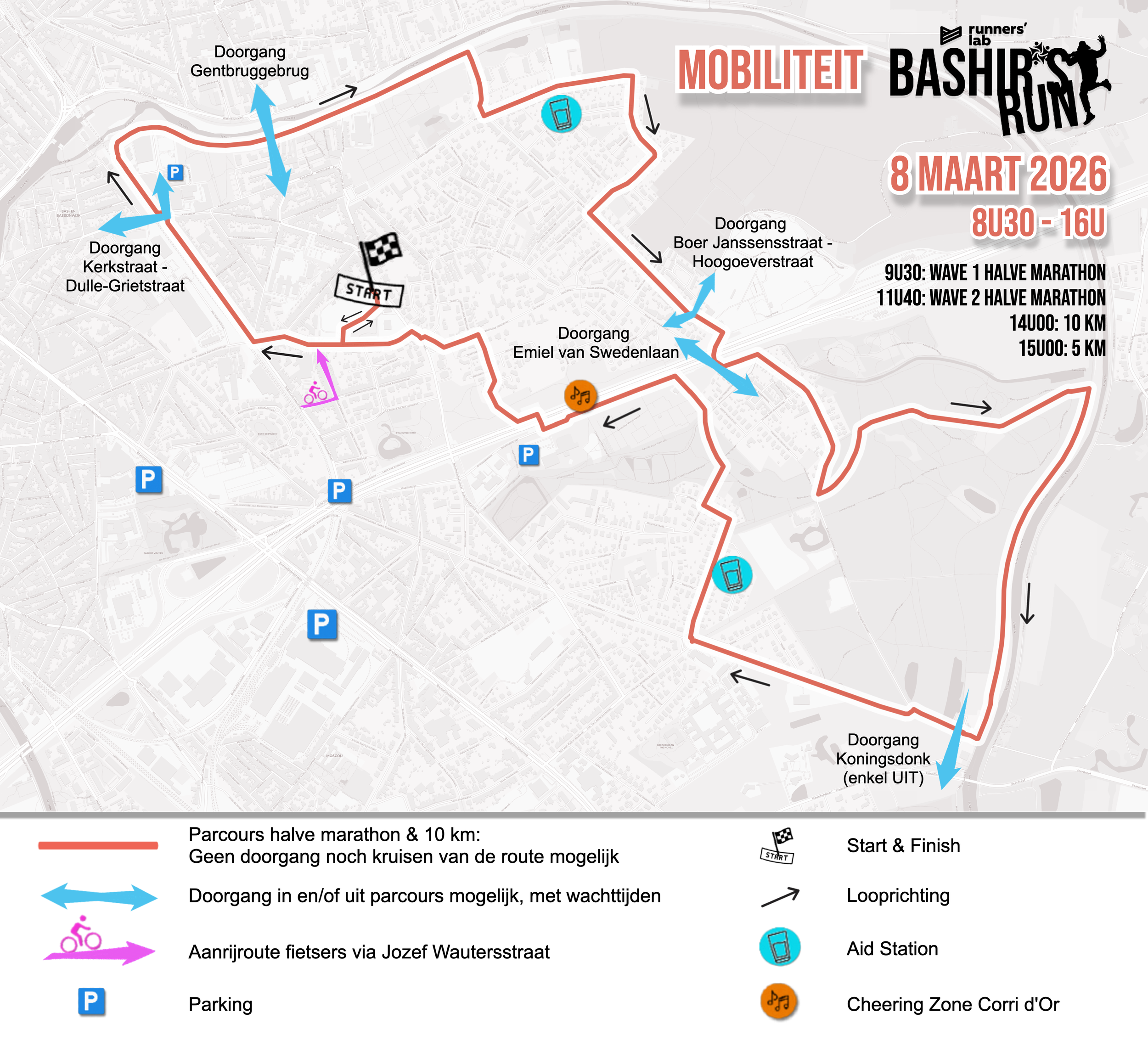 De plaatsten zijn beperkt en we verwachten veel lopers en supporters, probeer dus zoveel mogelijk gebruik te maken van het openbaar vervoer of te carpoolen.